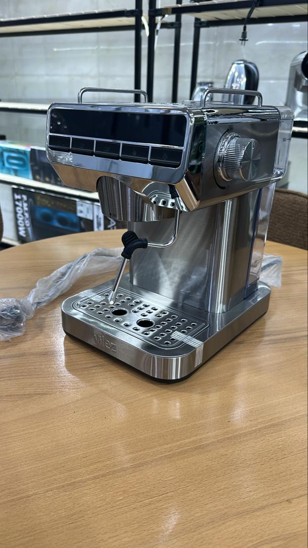 توان دستگاه : 1050 وات فشار بخار: 20 بار ظرفیت مخزن: 1/5 لیتر شامل فیلترهای تک و دو فنجان تنظیم میزان بخاردهی دستگاه درجه مصرف انرژی: A+ نوع نمایشگر: LED نازل کف گیر قابل جداشدن و ایمن دارای حسگر محافظ در برابر فشار بیش از حد جنس بدنه: استیل ضد زنگ و پلاستیک مقاوم ABS دارای صفحه گرم کننده برای پیش گرم کردن فنجانهای قهوه